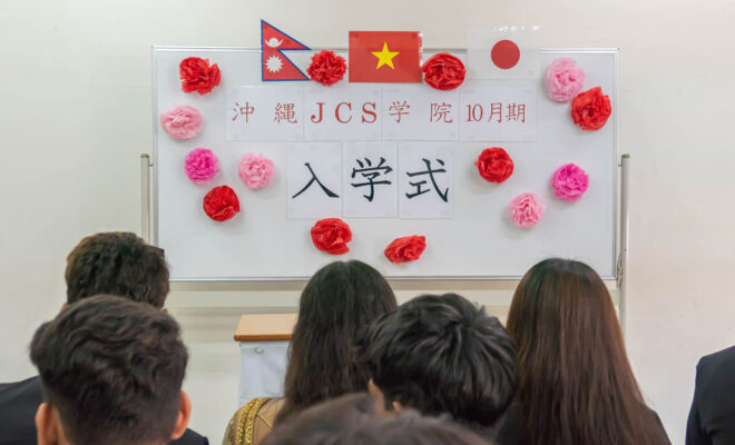 2022.06.7 2022年、お知らせ、写真ギャラリー(学院アルバム) 2022年6月 4月期入学式(午前の部) 開催日:2022年6月1日 水曜日 時 間:9時30分 集合、10時 開始、11時30分 解散 参加クラス:M-1、M-2、M-5 ※新型コロナ感染症対策のため参加者全員のマスク着用(記念撮影除く)と消毒・換気対策を実施して開催した。 開催場所:てぃるる 入場を待つ学生の皆さん 式次第 入場前の会場 入場し着席 クラス毎に着席 国家斉唱 司会:渡口先生 玉城校長より入学許可 新入生登壇(M-1クラス) 新入生挨拶 新入生登壇(M-2クラス) 新入生登壇(M-5クラス) 卒業生代表挨拶(ビデオ) 講師・職員の紹介 金城先生 渡口先生 多良間先生 山本職員 仲地先生 糀谷先生 話に聴き入る学生たち 校長挨拶 玉城校長 式終了し散会 式終了後に全員で記念撮影 入学式終了後に行われた記念撮影のスナップ 会場内で記念撮影 Share